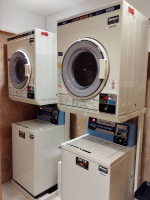 館内にはランドリーを置くスペースがなかったため、地下1階、駐車場横を利用して設置されました。